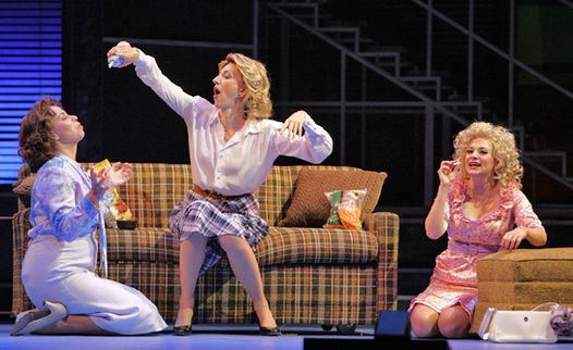 Dolly Parton’s stage version of the liberating movie comedy is given a sleek stage design by Robert A. Kovach, featuring a substantial looking office environment which morphs fluidly and amusingly into a wide variety of locations, often through the use of clever 1980s-era projections.